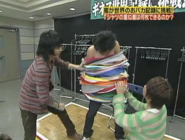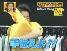 後來就是本集的大看點!!一個人到底可以穿幾件衣服,現在的世界紀錄是224件,