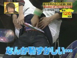 穿到第47件的時候,身體已經變成兩倍大了( ̄□ ̄|||)a,相葉ちゃん跟松潤還在那邊玩弄